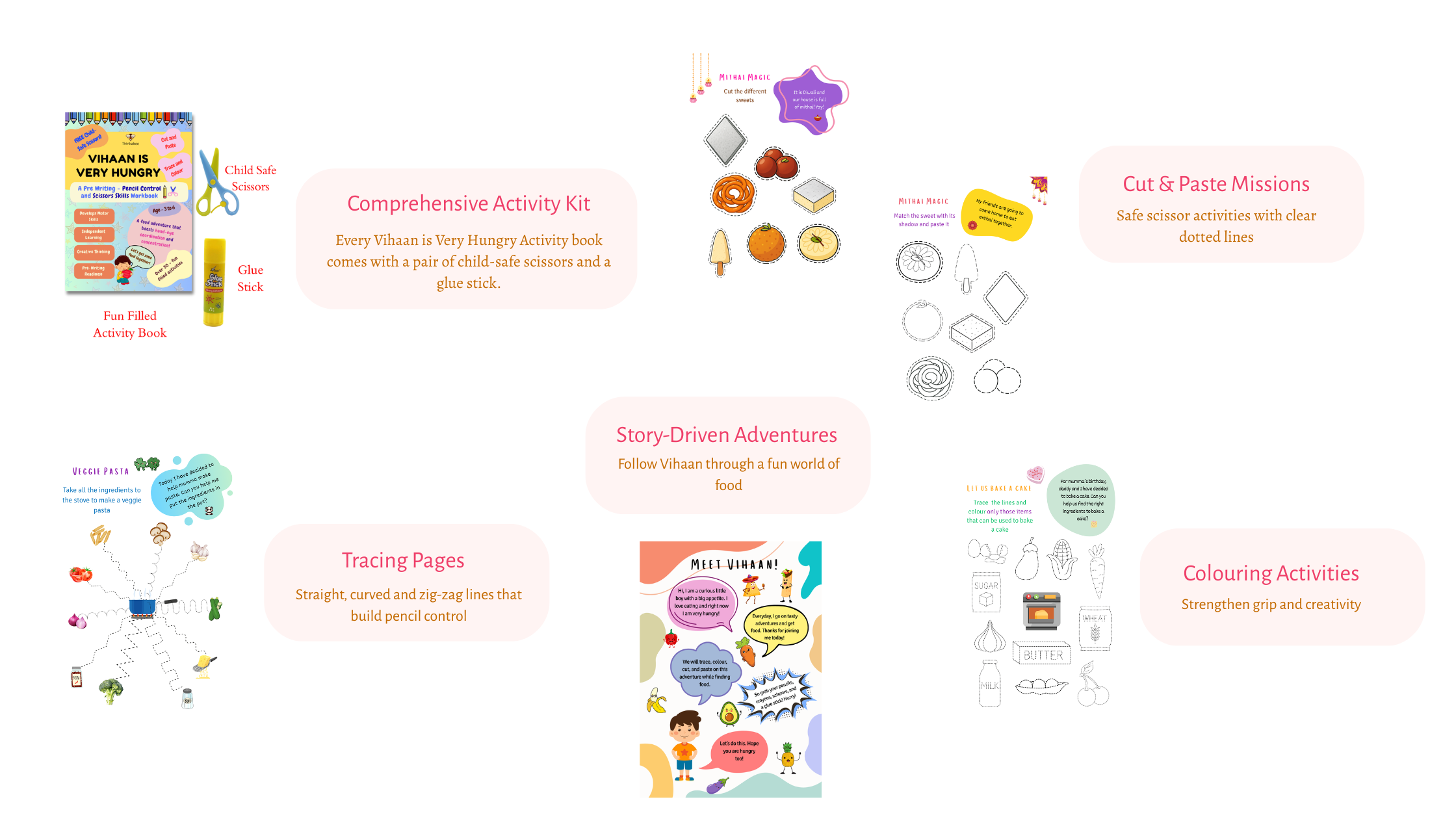 We create unique activity books for children ages 3–8 that inspire creativity, strengthen motor skills, and foster independent, screen-free learning. Through fun, story-driven adventures, our books encourage kids to imagine, think, and explore offering a joyful alternative to worksheets and screens while building the foundation for confident early learning.